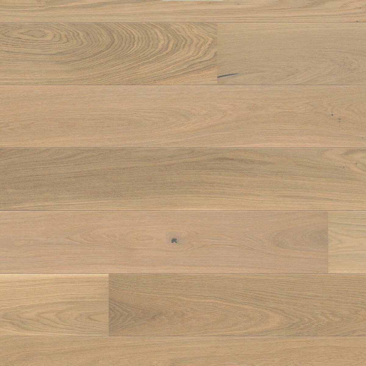 Tysk produceret flot plankegulv i eg – markant sortering (fin sortering med små knaster) samt med hvid splint. Dette gulv leveres med hele 3,5 mm slidlag hvilket sikrer en lang levetid på trægulvet da det kan slibes flere gange.