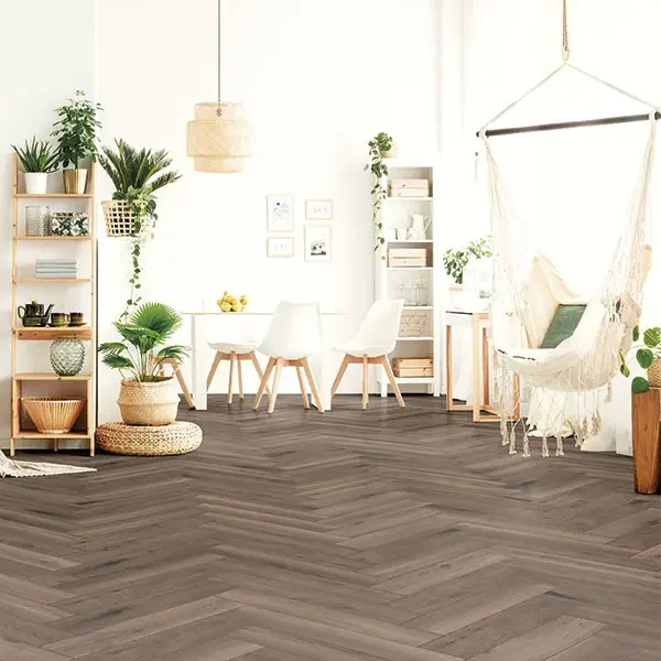 Dette elegante og smukke sildebenslaminatgulv skaber et tidløst udtryk med sit klassiske sildebensmønster. Fasen på alle fire sider af hver stav fremhæver det autentiske design, og giver en følelse af luksus. Gulvet er kun flot at se på, men også yderst funktionelt. Det har en høj slidstyrke, som gør den perfekt til brug i private hjem, fx stue, køkken, soveværelser og andre opholdsrum. Laminatgulvet er nemt at vedligeholde og rengøre, og den holdbare overflade modstår det daglige slid i mange år.
