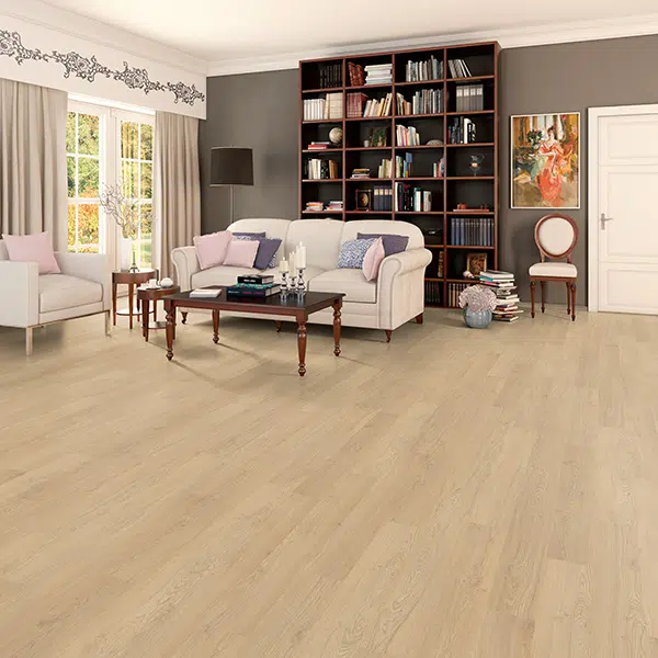 Flot europæisk laminatgulv som leveres med en naturtro overflade. Nemt kliksystem til montering.