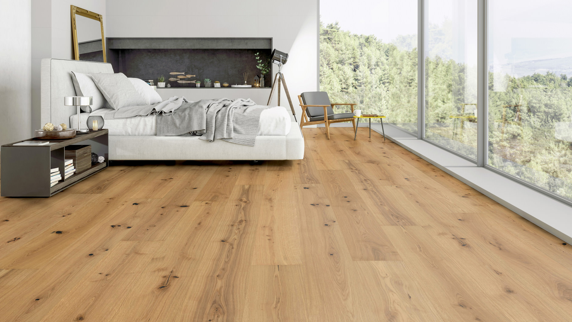 • Ekstra bred planke giver et roligt og elegant gulvforløb med færre skarpe samlinger.