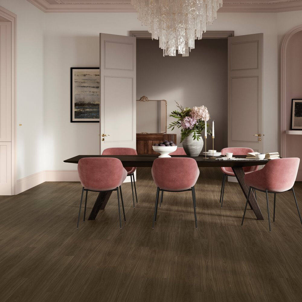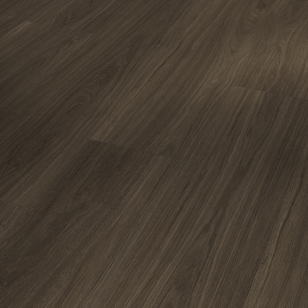 Parador Vinylgulv Eg Oxford mørkebrun planke fra produktlinjen Classic 2070 imponerer optisk og teknisk hele vejen. Det sunde, antibakterielle og hygiejniske gulv er robust og vedligeholdelsesvenligt og egner sig til krævende rumsituationer. Det er kompromisløst i kvalitet og klassisk i design. Det fås som planke i formatet 1209 x 225 x 6 mm, er støjsvagt og fodvarmt og netop derfor meget populært ved privat brug. Gulvet har en omgivende fas og sørger for et autentisk helhedsindtryk. På den måde opstår der en særlig atmosfære, der skaber et smukt og hyggeligt hjem. Gulvets silkematte struktur får det til at virke roligt og harmonisk og ligne ubehandlet træ. Parador designgulvet Vinyl Classic 2070 er 100 procent vandfast og kan dermed lægges i vådrum uden problemer – helt uden tidsmæssig begrænsning ved stående vand. Det har en SPC-bæreplade, en integreret trinlydsdæmpning og en integreret bagside, der yderligere forstærker overfladens meget gode akustik. Det kan lægges på let ujævne underlag samt på gulvvarme og gulvkøling. Comfort-kliksystemet giver mulighed for at lægge tæppet let, sikkert og nøjagtigt. På grund af dette gulvs fremragende egenskaber er der en livslang producentgaranti ved privat brug. Ved kommerciel brug gives der en garantiperiode på 10 år.