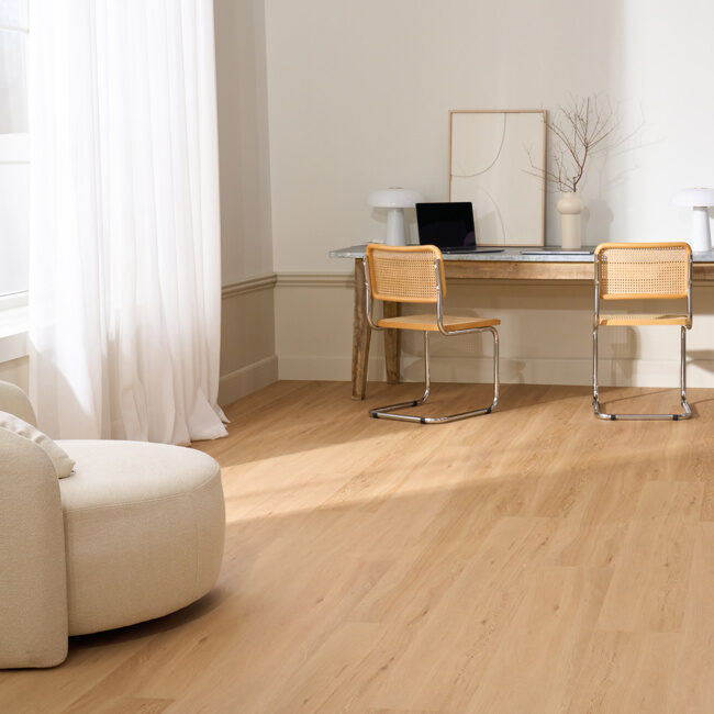 Gulvet kommer i en smuk og levende sortering med mørke og naturlige nuancer. Bedre komfort og lyddæmpning på hele 21 dB. Premium udmærker sig ved, at det udover den fantastiske akustik og komfort har en enestående overflade. Den ultramatte finish får gulvet til at ligne et olieret trægulv hvilket suppleres med en naturtro 3D-overflade med knaster og åretegninger. Gulvet er vandafvisende og er i en styrke 33 med 0,55 mm slidlag.