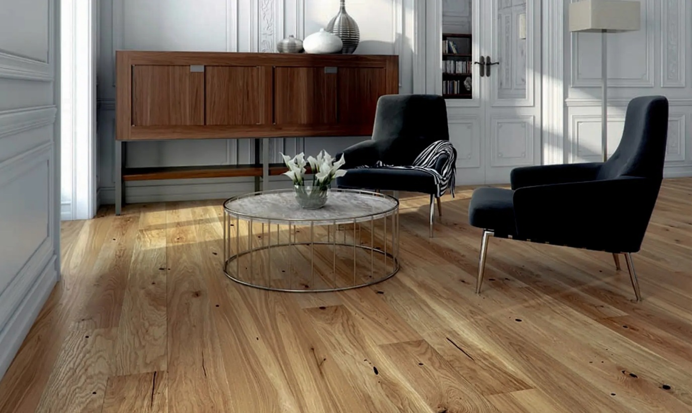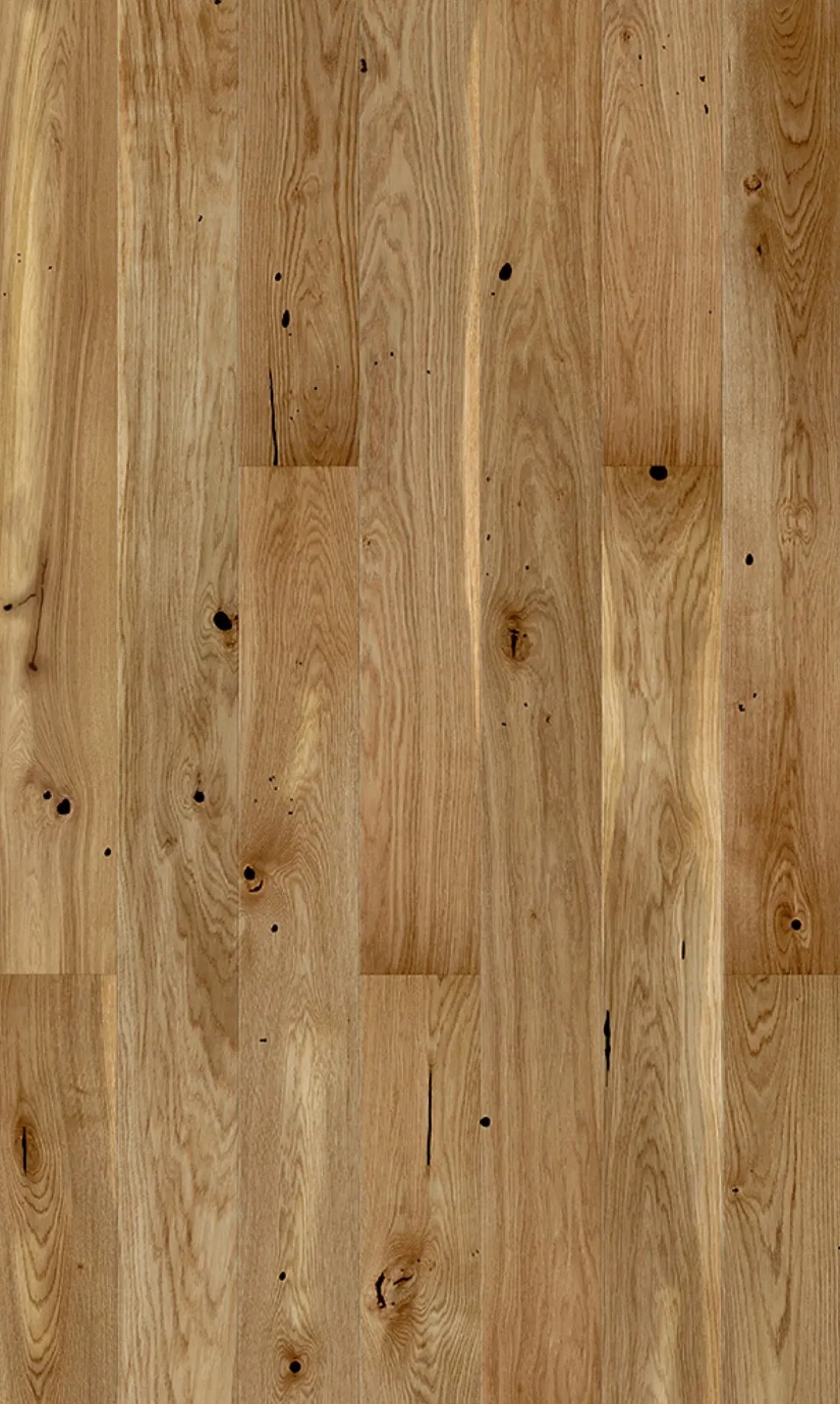 De lange planker giver et unikt og naturligt udtryk, og træets naturlige detaljer kommer frem på flotteste vis. Overfladen er børstet, som fremhæver træets naturlige åretegninger. Har fas på alle 4 sider. Drop Down kliksystem for nem montering. Lægges uden brug af lim.