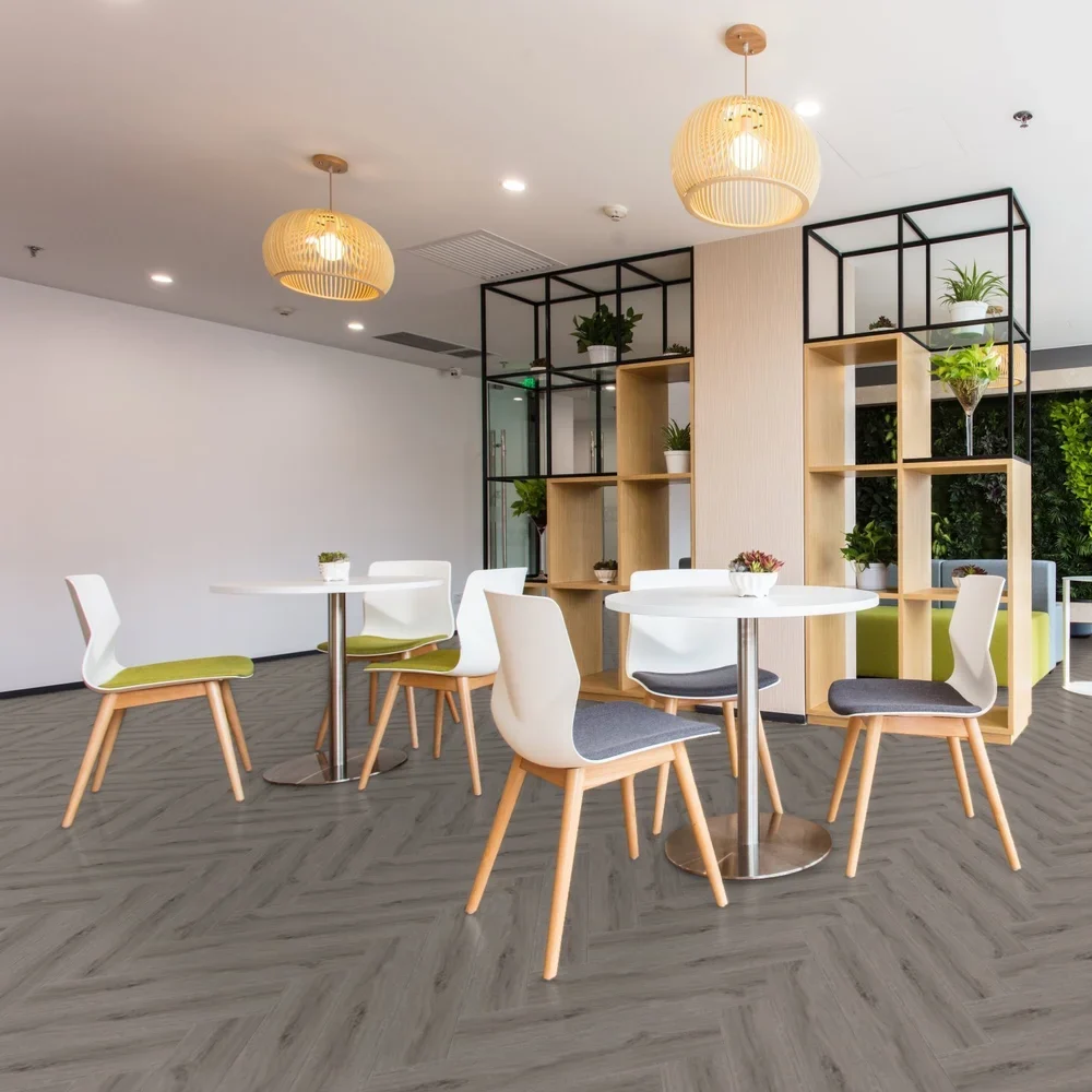 Flot sildebensgulv med integreret gummi bagside. Dette gulv er i en slidstyrke 34/AC5 som også er egnet til erhvervslokaler. Praktisk og nemt gulv.
