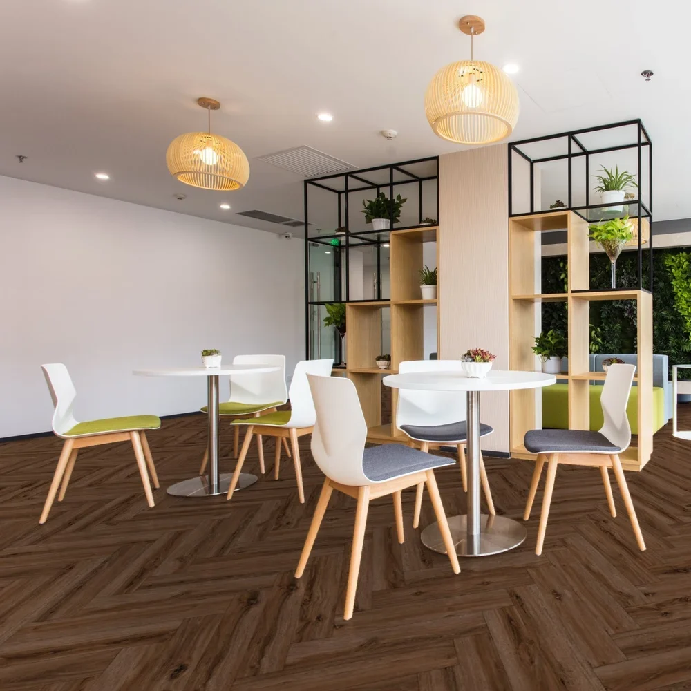Flot sildebensgulv med integreret gummi bagside. Dette gulv er i en slidstyrke 34/AC5 som også er egnet til erhvervslokaler. Praktisk og nemt gulv.