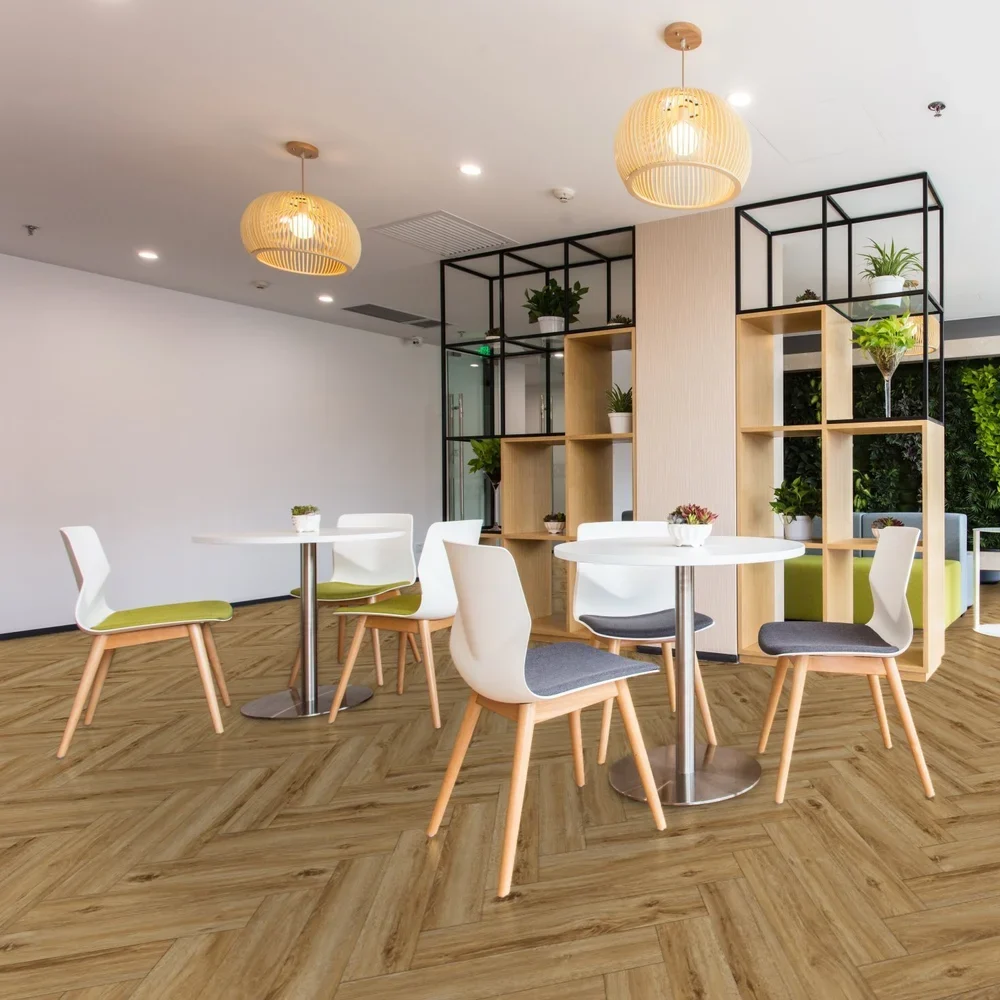 Flot sildebensgulv med integreret gummi bagside. Dette gulv er i en slidstyrke 34/AC5 som også er egnet til erhvervslokaler. Praktisk og nemt gulv.